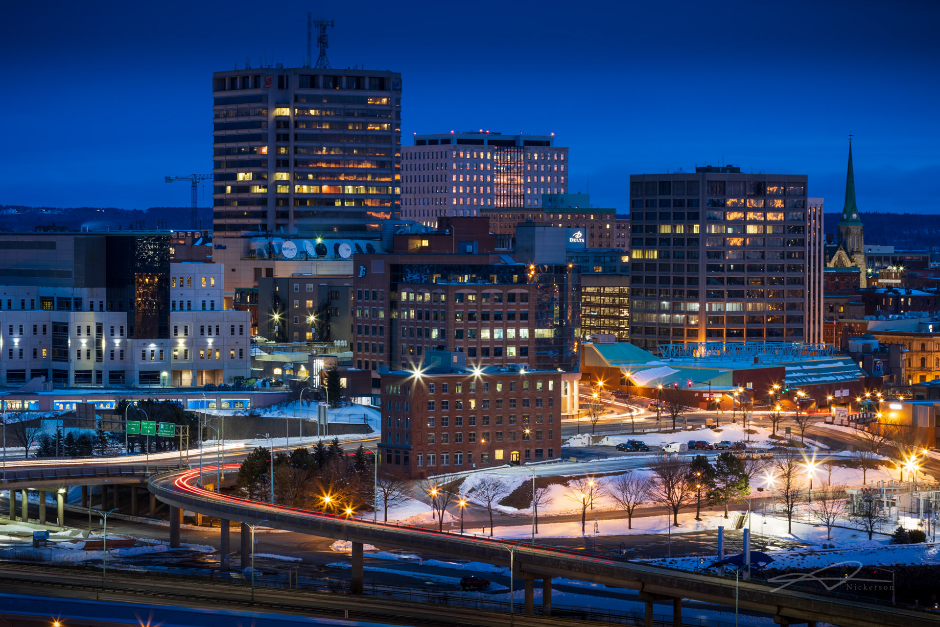 City Streets from afar. A collection of larger scenes of unique buildings, city lights, or tall buildings.